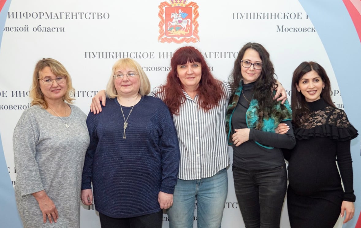 2021 г., В редакции «Пульса Ивантеевки» с Л. Г. Болычевской, Н. В. Меньшаковой и юными журналистами