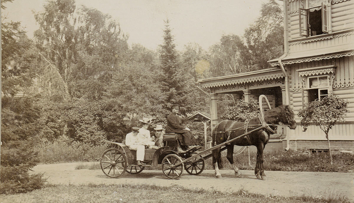 Пролетка с пассажирами в подмосковном Загорье Крестовниковых Нач. ХХ в. Фото М. Золотарева.