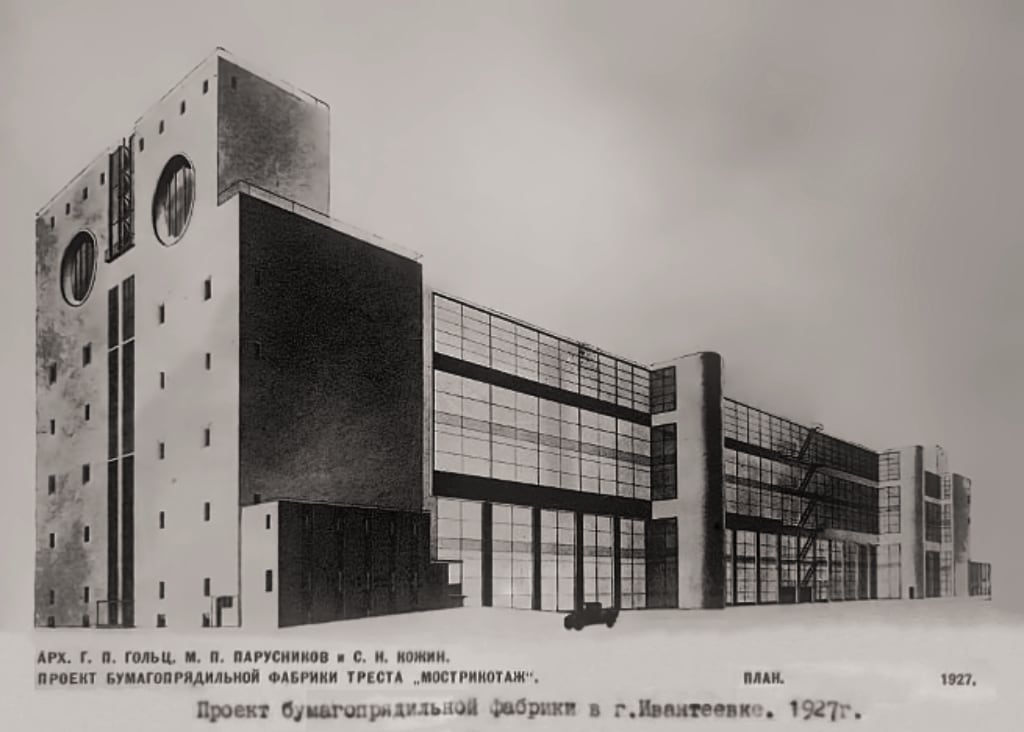 Проект фабрики «Мострикотаж». 1927 г. (Музей Академии архитектуры СССР)