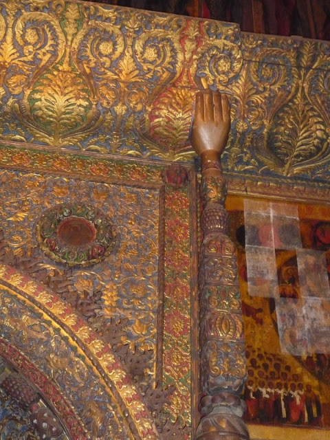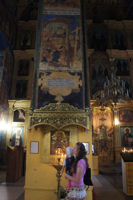 Первым нас встретил Храм Воскресения на Дебре, с него мы начали своё двухдневное путешествие, там же завершили его. Яркий и лубочный, внешне он напоминает боярский терем, внутри таинственен и строг. В последний день с нами мило побеседовал седой прихожанин и разрешил сфотографировать деревянный престол XVI века. Когда он выяснил, что мы из Москвы, то поспешил завершить разговор.