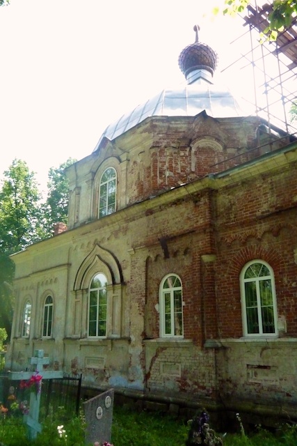 Мышкин очень мал. На окраину города, где находится храм Богоматери Всех Скорбящих мы шли минут пятнадцать, правда пришлось вброд перейти через заросший лопухами ручей. В центре города, из архитектурно значимых зданий — Успенская церковь. Круглая и добротная, расписанная по-настоящему талантливо и любовно, с верхними оконцами-витражами и деревянным престолом начала прошлого века.