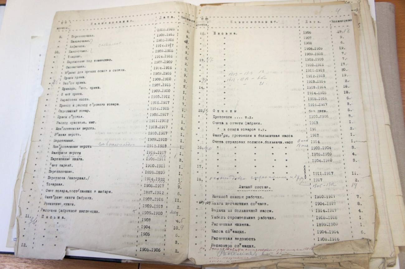 Архивное дело Ивантеевской тонкосуконной фабрики и формуляр Лыжина