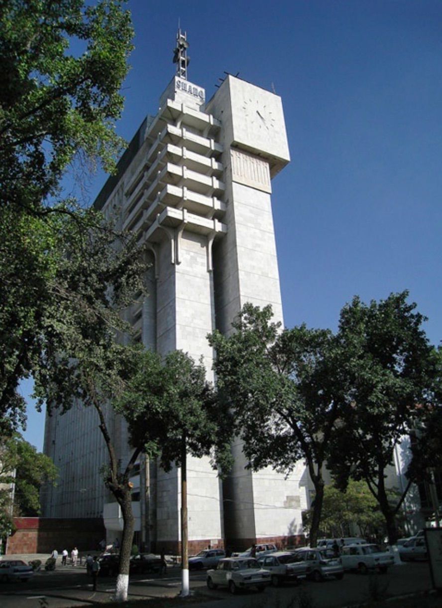 В башне с часами находилась лифтёрная, и я выпросил у начальника разрешение и ключи, чтобы сидеть именно там. Это двухэтажное помещение с огромными моторами, электрическими шкафами. Я принёс туда трубу-корнет и гитару, писал стихи и созерцал Ташкент с высоты двадцати двух этажей.