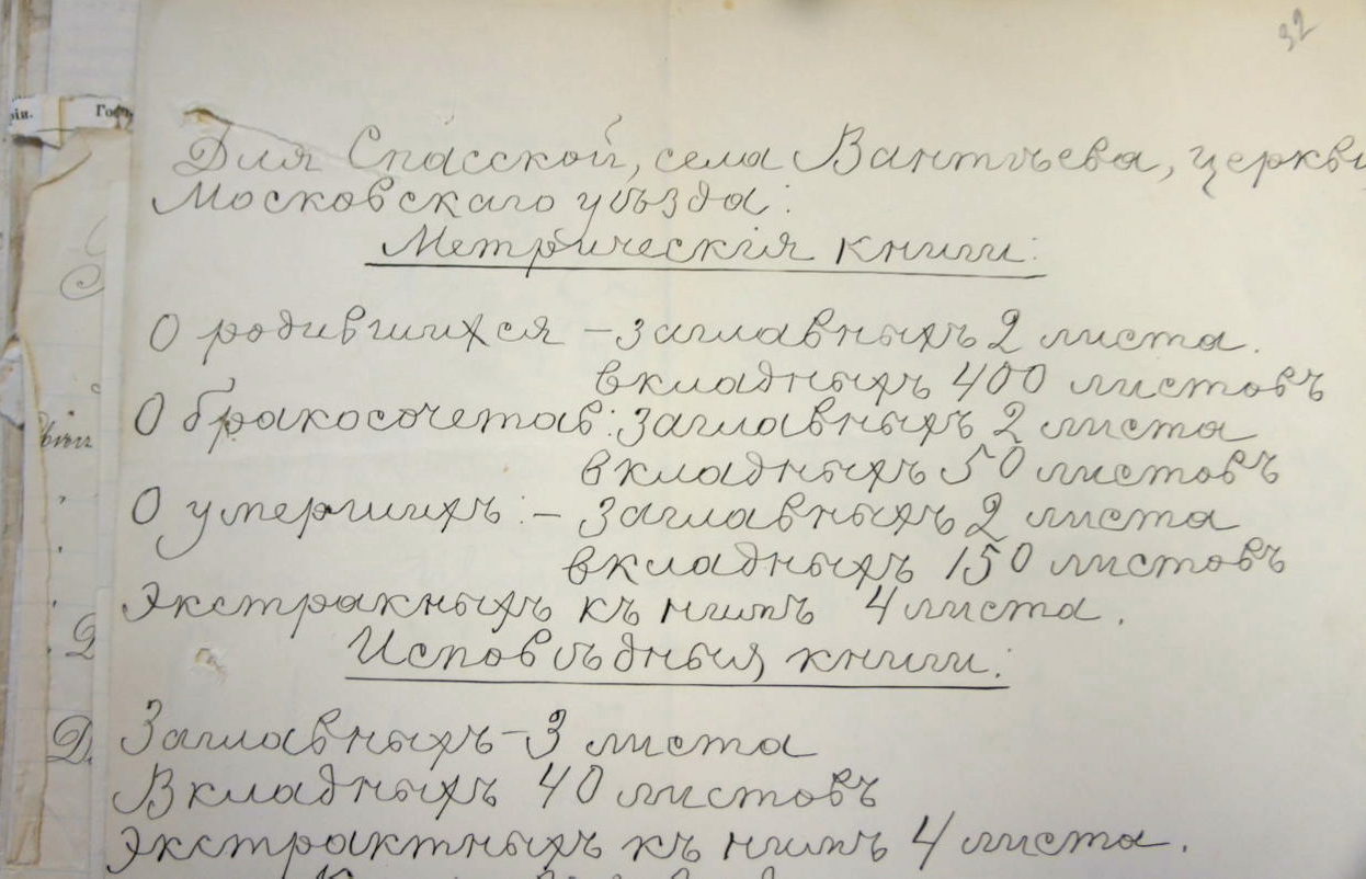 Кроме прочего, для Спасского храма было заказано и более всего требовалось метрических книг: о родившихся в 400 листов, об умерших — 150, о бракосочетаниях — 50, метрических бланков о родившихся — 100 листов. Документ подписан заведующим фабрики Павлом Ермаковым.[1]