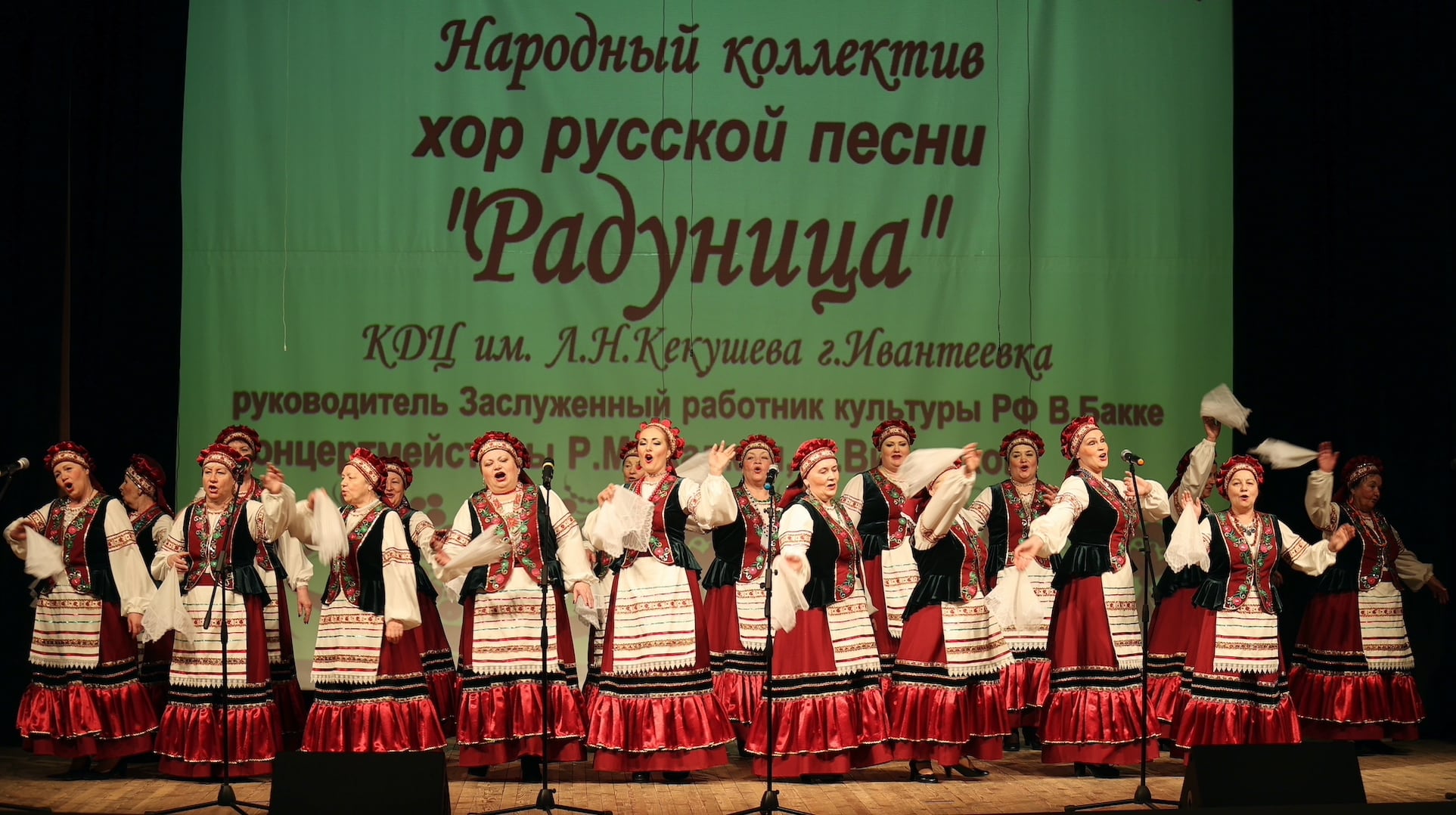 Вот уже 45 лет поёт в Ивантеевке душа народная, хор русской песни «Радуница». Уникальный не только годами и славой, но и своим репертуаром. Его основу составляют песни, собранные в фольклорных экспедициях хормейстером коллектива, заслуженным работником культуры России В. В. Бакке.