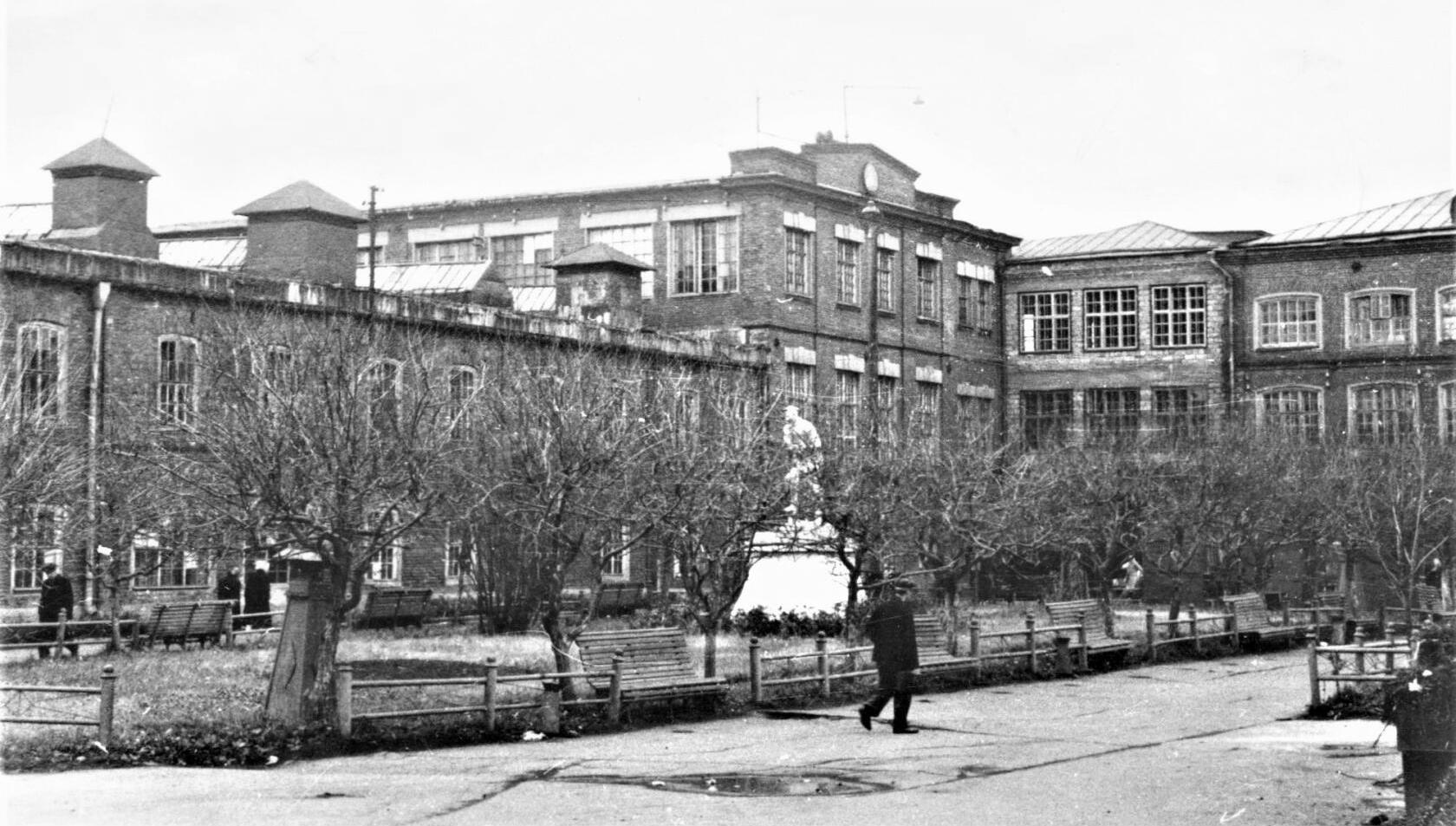 Двор фабрики с первым (1935-1960-е гг.) памятником Ф. Э. Дзержинскому