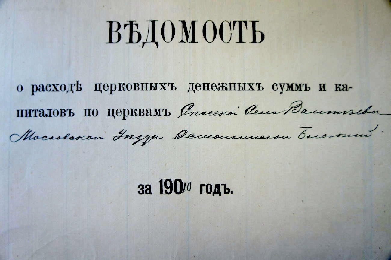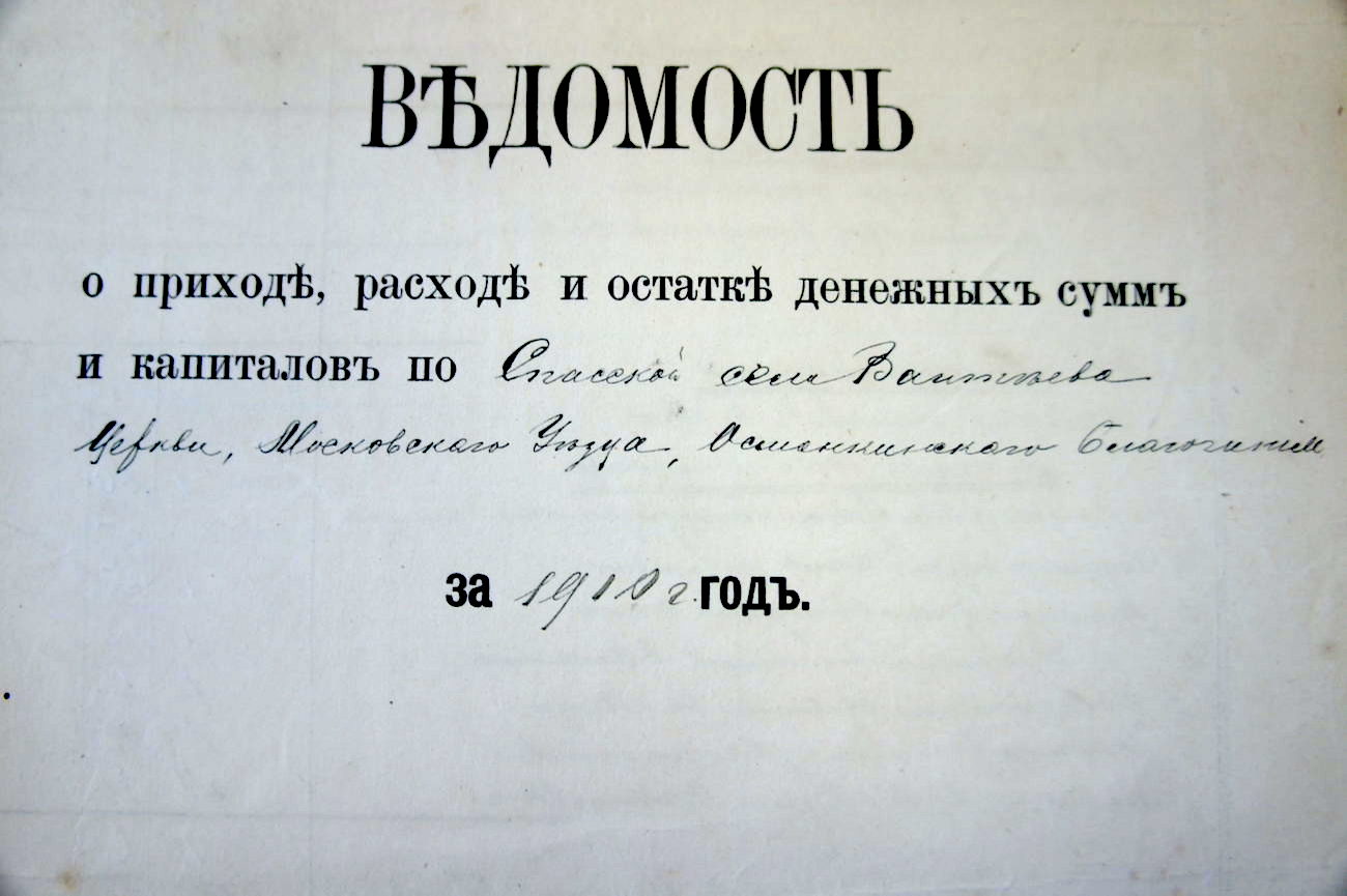 В архивном деле «Об участи ивантеевского фабриканта Владимира Лыжина в благотворительных обществах» среди большого и разрозненного числа уникальных документов, сохранились четыре Ведомости Спасской села Вантеева Церкви, Московского уезда, Останкинского благочиния за 1910 год, то есть нынешнего Храма Смоленской иконы Пресвятой Богородицы, Московской области, Ивантеевского благочиния. Ранее эта папка никем не исследовалась, и мы бесконечно благодарны Создателю и рады представить Ведомости почтенной публике в честь 80-летнего юбилея образования города.