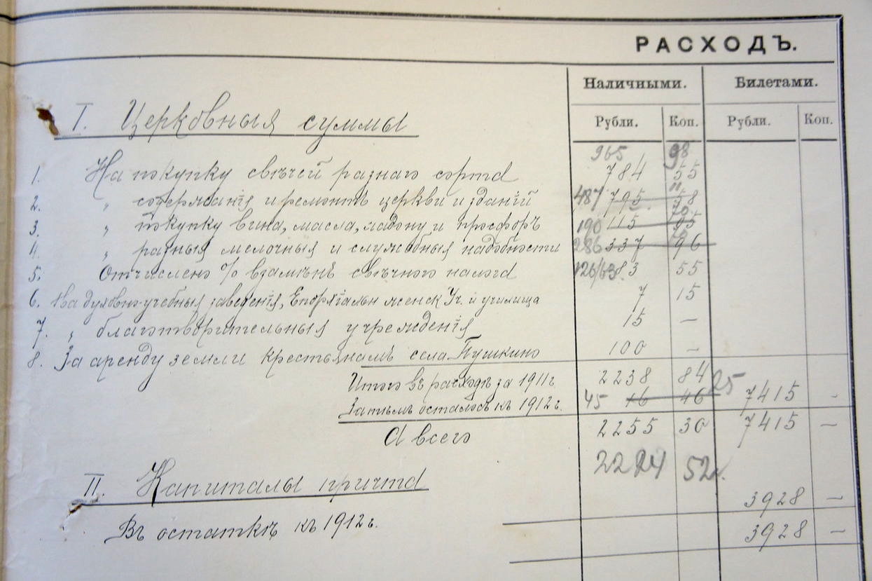 - содержание и ремонт церкви и зданий (в среднем около 500 рублей);
