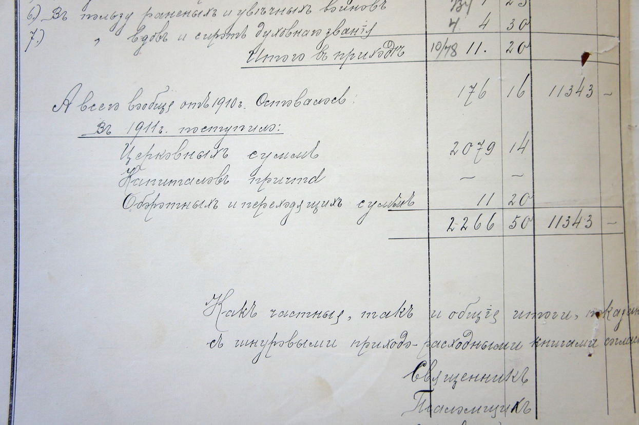 Общие ведомости «А» подписывались священником, псаломщиком и церковным старостой. Остальные пять групп ведомостей велись для внутреннего пользования и занесения сумм в общую ведомость, в случае исправления в цифрах их мог подписать священнослужитель церкви.
